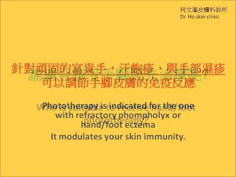 Phototherapy is indicated for the one with refractory phompholyx or hand/foot eczema